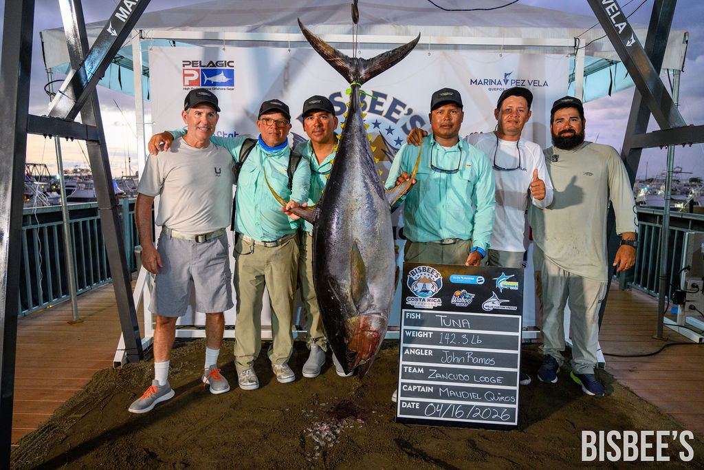 The big tuna certainly didn’t mind the slight weather change today. John Ramos and Zancudo Lodge Z-1 topped the field with a 141.9-pound tuna to take top daily honors. Adrian Miranda and his North Star Costa Rica pals were right behind with a 141.7-pound entry.